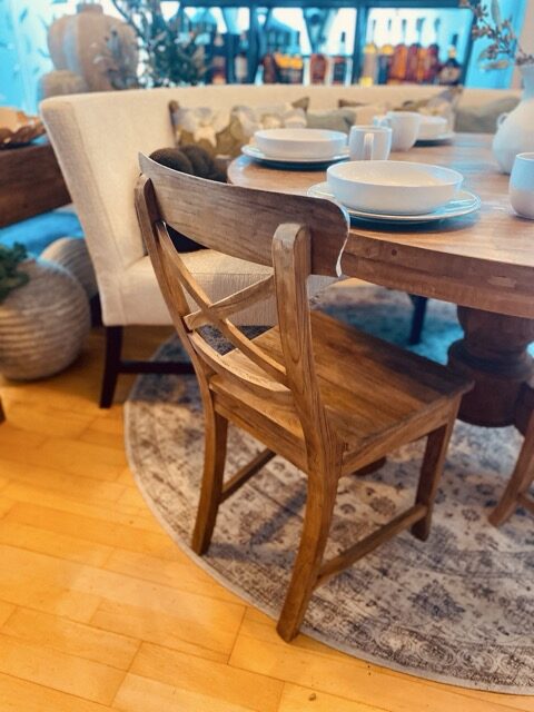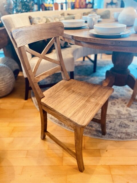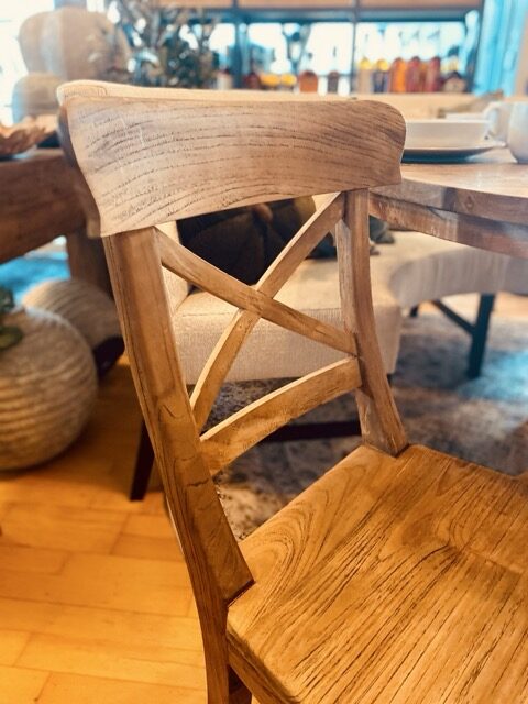 A classic wooden chair, great for a dining table or desk. Features "X" format on the back for added detail. Available with or without armrests.